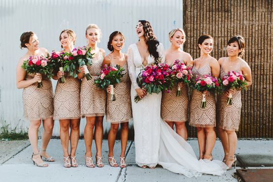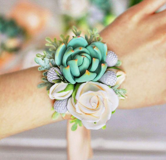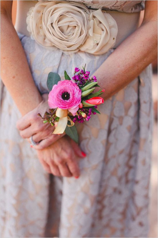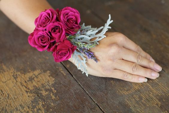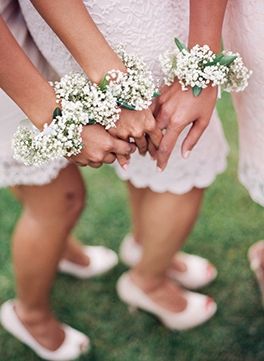 To bardzo częsty pomysł na to, by urocze druhenki wyróżniały się na tyle innych gości weselnych. Mają one na przegubie ręki niewielką ozdobę z kwiatów, która (rzecz jasna) koresponduje z bukietem ślubnym Panny Młodej. I jest pięknie!