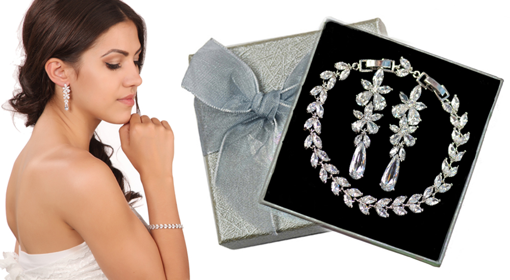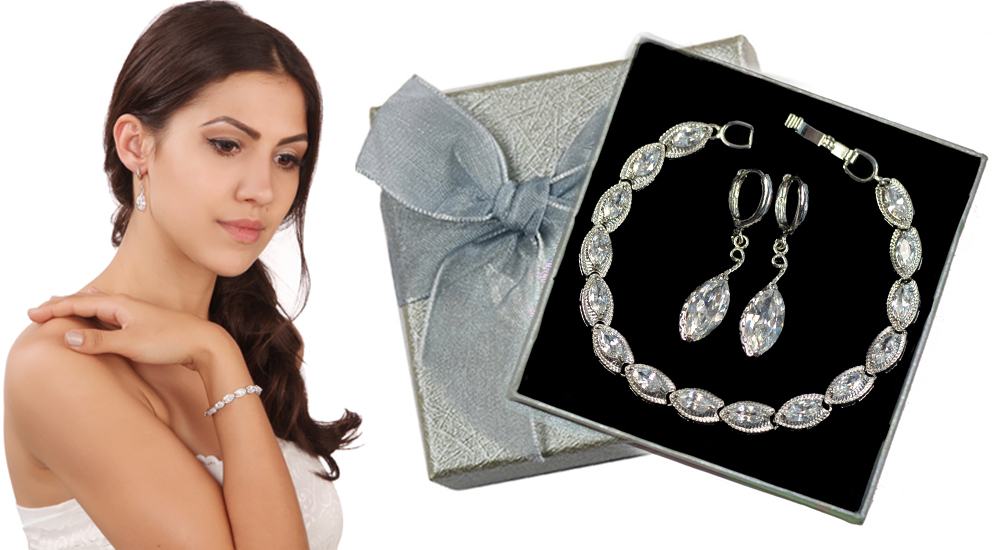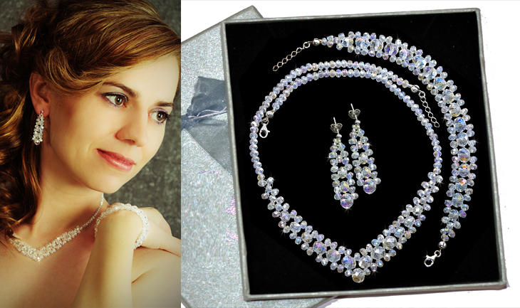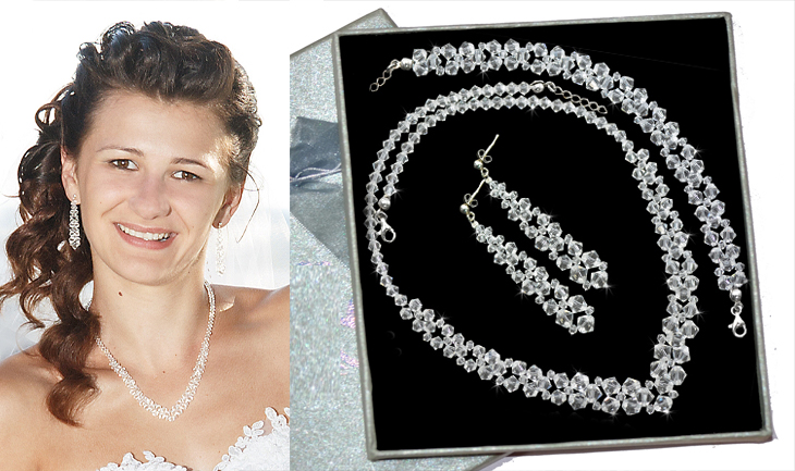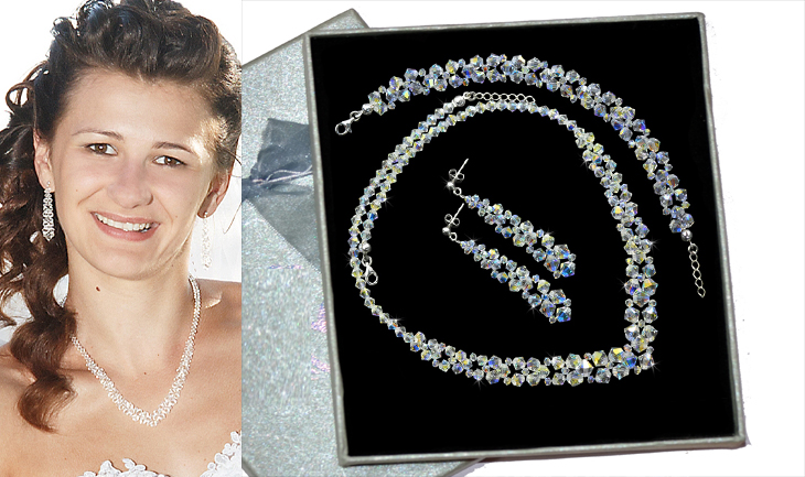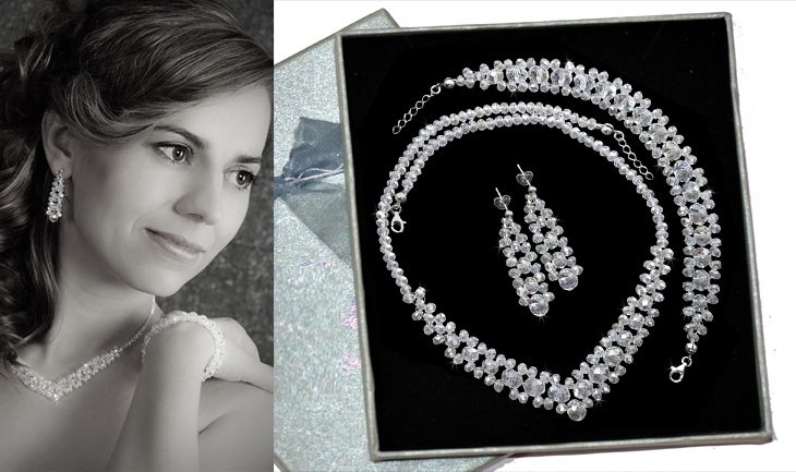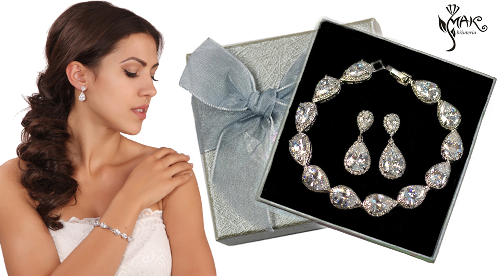 Kryształki Swarovski Element oraz cyrkonie które zdobią zarówno delikatne, subtelne ozdoby a także bardziej okazałe dodatki, wspaniale załamują światło i minią się kolorami tęczy. Wykonujemy również projekty na specjalne zamówienie, modyfikujemy czy dopasowujemy długości do indywidualnych preferencji klientki. Dużym atutem jest to, że można dobrać poszczególne elementy z całego kompletu np. same kolczyki z bransoletką.