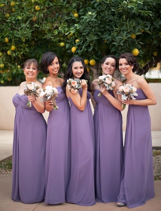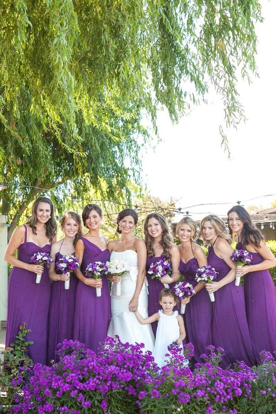 Pełne uroku druhenki będą na pewno wspaniale prezentowały się w gustownych fioletach. Wszystkie mogą mieć identyczne suknie lub po prostu kreacje tej samej barwy, różniące się jednak nieco krojem. Będzie pięknie!