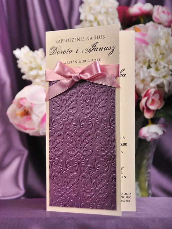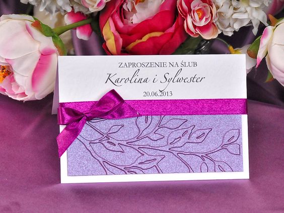 Zaproszenia na ślub i weselne przyjęcie powinny wskazywać kolor i motyw przewodni. Na szczęście w przypadku fioletu nie będziecie mieli z tym problemu, przygotowano bowiem całe mnóstwo pięknych karnecików tej barwy. Które najbardziej przypadły Wam do gustu?