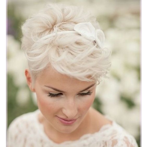Jeśli krótkowłosa Panna Młoda będzie miała na głowie zjawiskowy kwiat (żywy bądź w formie sztucznej ozdoby), z pewnością zachwyci wszystkich. Sto procent kobiecości i uroku!