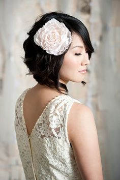 Fryzury ślubne: krótkie włosy i kwiat – jest uroczo!