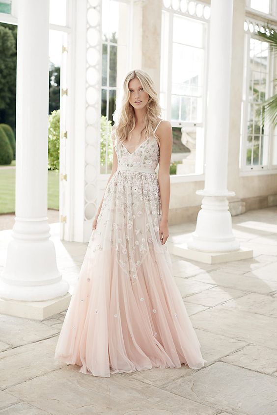 Przede wszystkim warto byłoby wybrać konkretny kolor (choćby róż, błękit, fiolet czy zieleń) i poszukać sukni, w przypadku której różne odcienie jednej barwy będą pojawiały się w ramach jednej kreacji. Oczywiście istnieje też możliwość zakupu sukni ombre utrzymanej w wielu barwach, ale to stosunkowo rzadkie rozwiązanie.